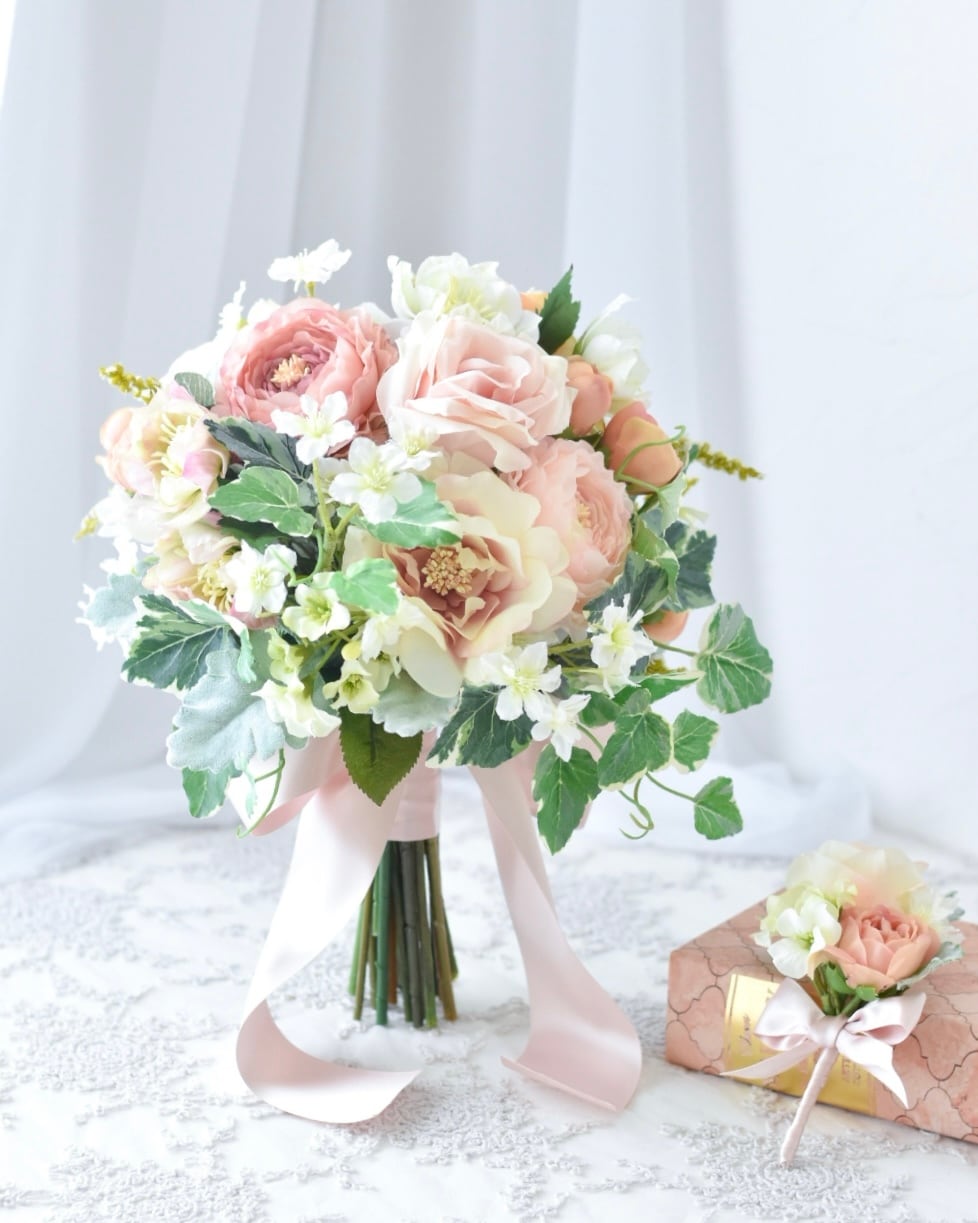 ◆ブーケとブートニアのセットでお届けいたします。